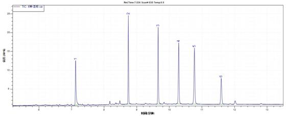 测定体例:TIC(FULL SCAN)定性(扫描规模:45-450amu),SIM形式定量。
