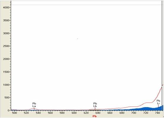 如图是实谱特征纯铜rc101(Pb,0ppm)即本底、紫色虚谱为 镍白铜313(Pb:60ppm)