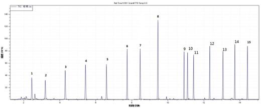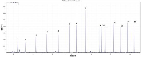 图11 . TVOC规范溶液气相色谱图