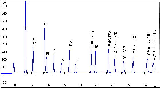 图1.16种多环芳烃规范标准饱和溶液色谱图