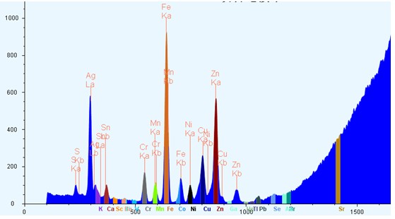 图4 EDX4500H某大(da)气颗(ke)粒物富集滤膜X荧光(guang)阐发谱图