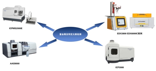 针对快递包装重金属及特定元素(除氟元素外)的检测,可经由过程EDX光谱仪停止前期的疾速无损挑选阐发,前期经由过程AAS、ICP-OES、ICP-MS停止切确定量阐发。