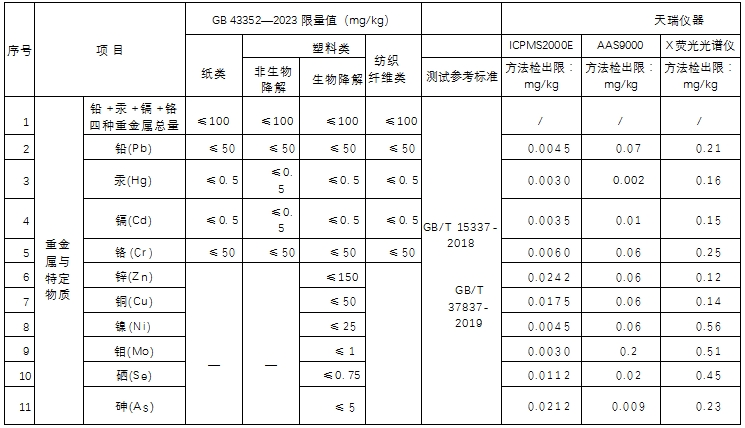 参考规范GB/T 15337-2008,接纳AAS9000搭配HG600S型氢化物产生体系,对快递包装纸箱中铅、镉、铬、汞等十几种元素停止加标收受接管测试,各元素差别测试体例的检出限、精密度、收受接管率均知足规范检测请求。