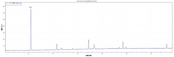 测定体例:TIC(FULL SCAN)定性(扫描规模:40-200amu),SIM形式定量。
