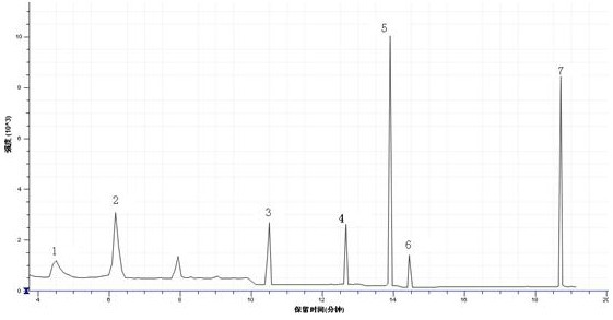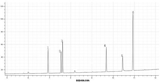 6.2 6种含氯苯酚国家标准参杂氢氧化钠溶液总阴离子流探测图(TIC):