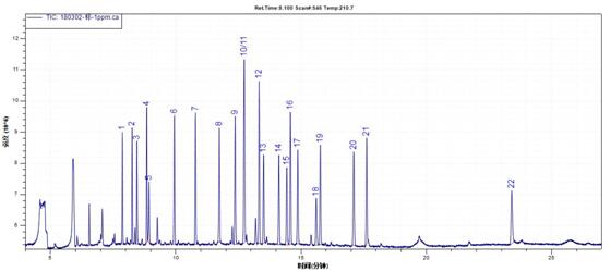 测定(ꦗding)(ding)体(ti)例(li):TIC(FULL SCAN)定(ding)(ding)性(xing)(扫描规模:45-450amu),SIM形🥀式定(ding)(ding)量(liang)。